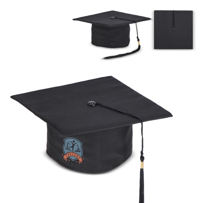 Vier je prestaties in stijl met deze klassieke afstudeerhoed, die zorgt voor een stevige en comfortabele pasvorm. De platte, gestructureerde bovenkant is perfect voor de iconische afstudeer toss. Het ontwerp met zijnaden biedt ruimte voor persoonlijke opdrukken, waardoor het een opvallend accessoire is voor elke ceremonie.