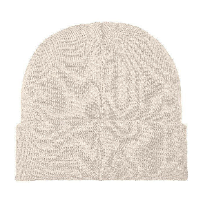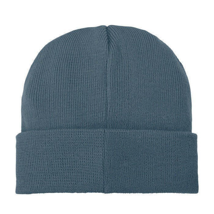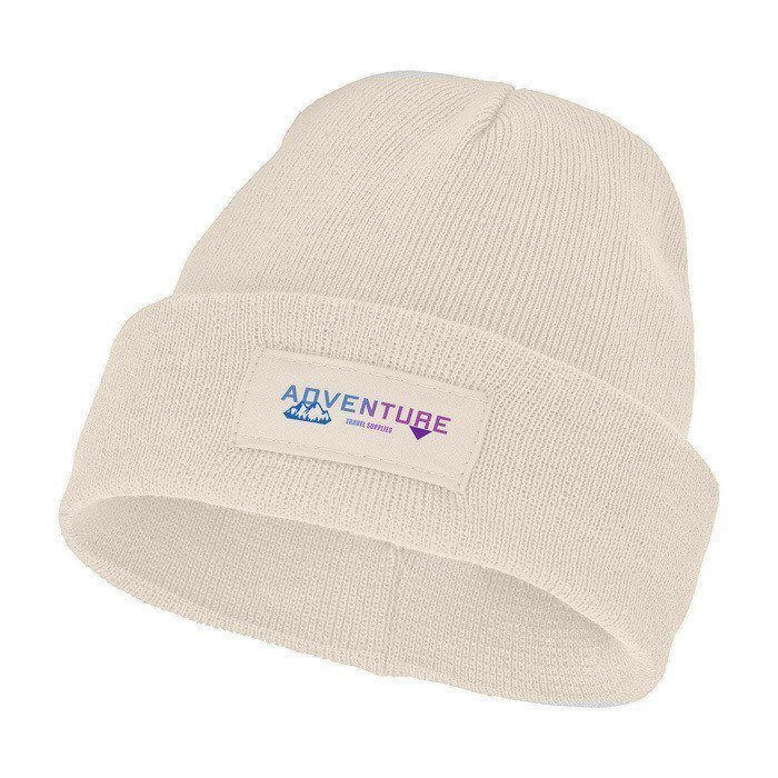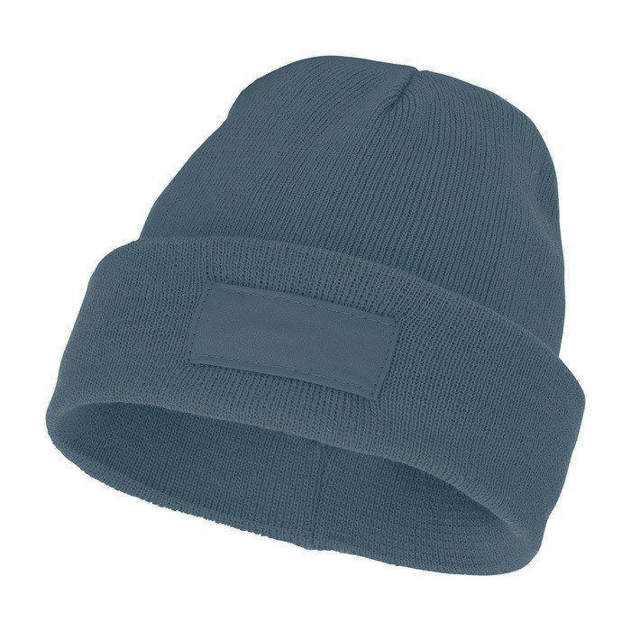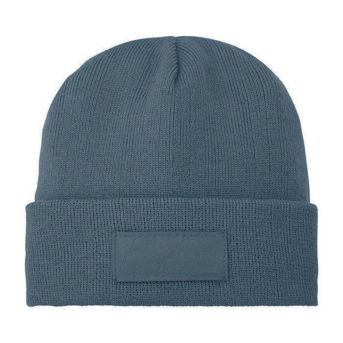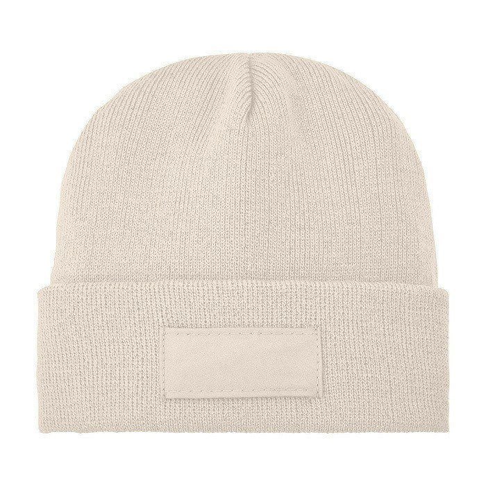Enkellaags beanie met dubbel gevouwen rand. Patch voor decoratie.