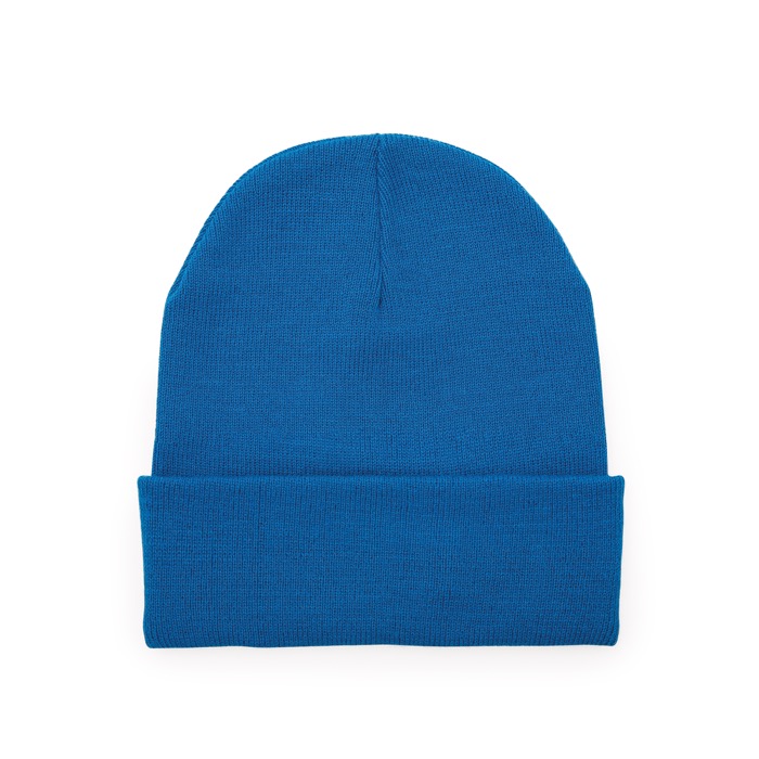 Gebreide muts met dubbele omslag, speciaal voor borduurwerk. 100% acryl. Verwijderbaar label.