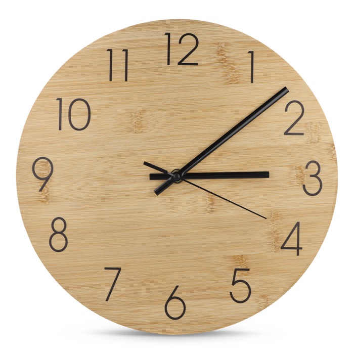 Voeg een duurzaam accent toe aan je werkruimte met deze minimalistische wandklok. De bamboe afwerking en grote cijfers geven elegantie en warmte.