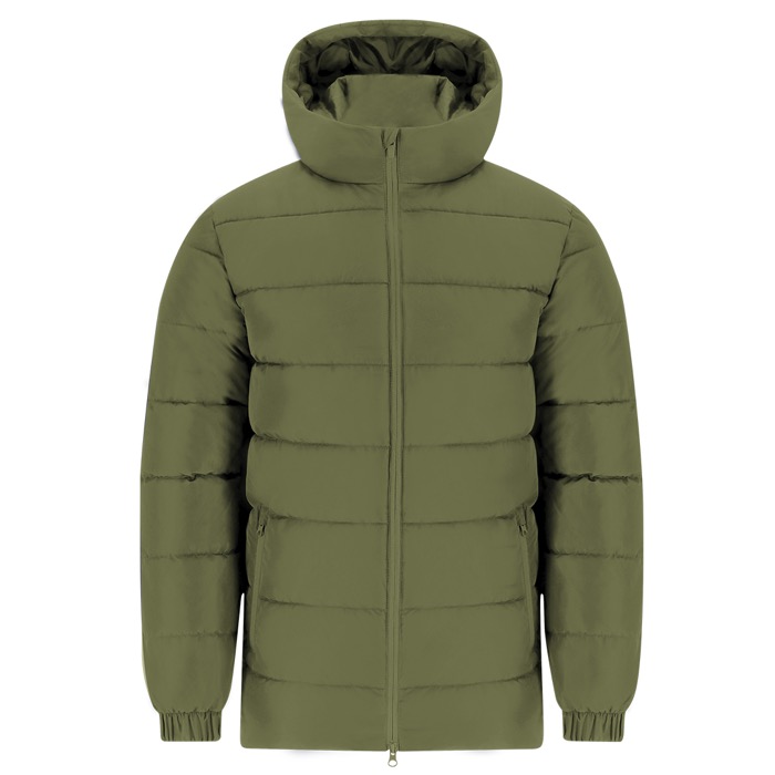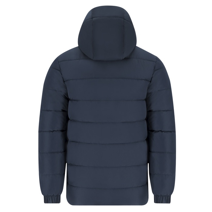 Unisex gewatteerde parka met vaste capuchon en geïntegreerde klep. Voorzien van een ritssluiting in bijpassende kleur met dubbele trekker en kinbescherming. Met elastische mouwboorden voor een comfortabele pasvorm en twee zijzakken met ritssluiting in dezelfde tint.