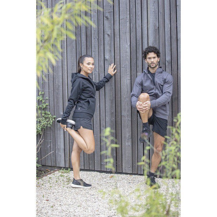 Omgekeerde spiraalritsluiting vooraan in het midden. Voorvakken. Geborsteld aan de binnenkant. Ophanglus met merknaam. Satijnen nektape. Mediadoorgang met snoergeleider aan de binnenzijde. Halfmoon. Transfer maatlabel voor extra comfort.