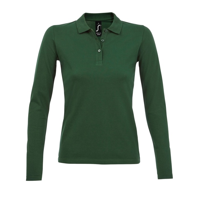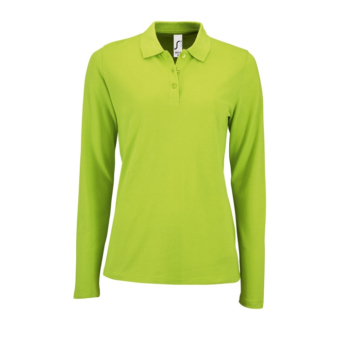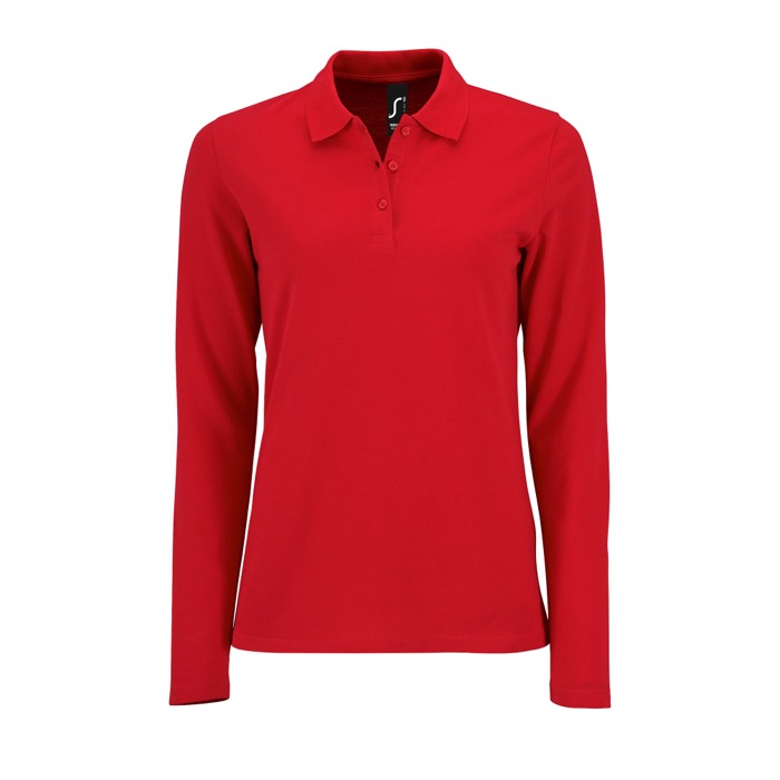 SOL'S PERFECT LSL WOMEN. piqué© damespolo met lange mouwen. 100% gekamd katoen piqué© 180gr, 1x1 ribkraag, lange mouwen, 3-knoopsluiting, getailleerd model, band aan de binnenkant van de kraag. OEKO-TEX®. Uitsluitend verkocht met opdruk.