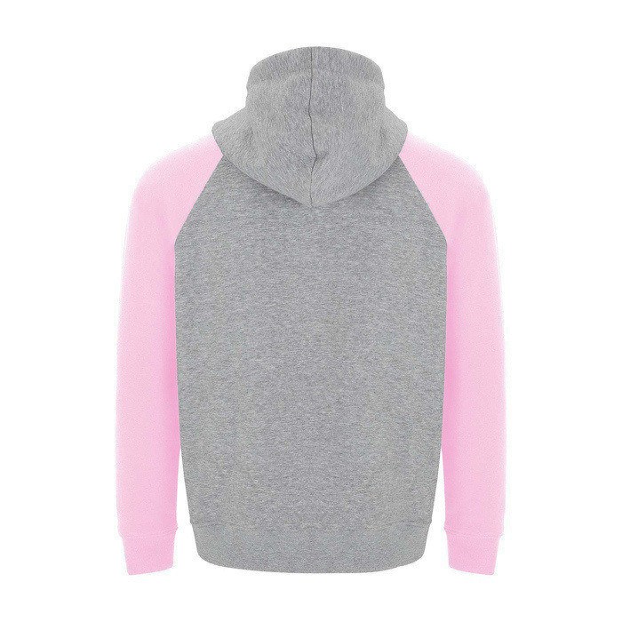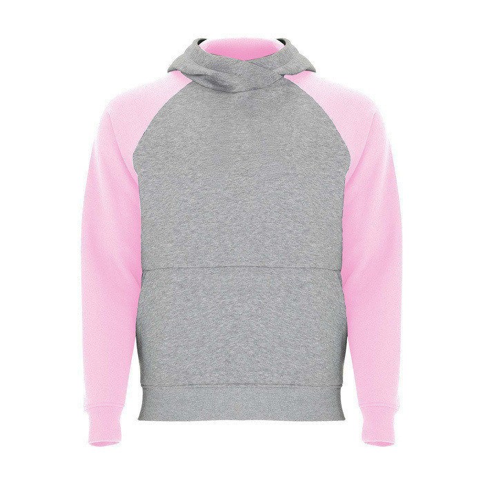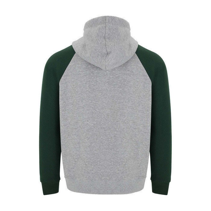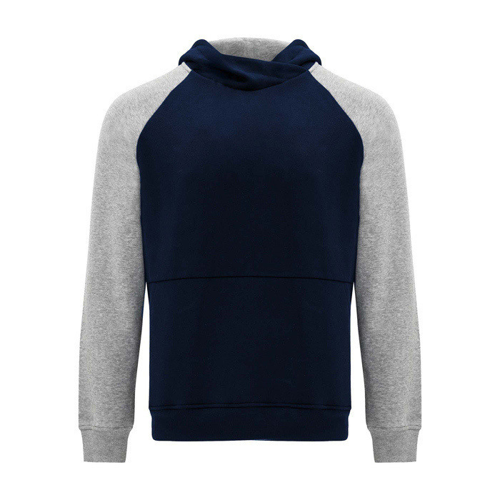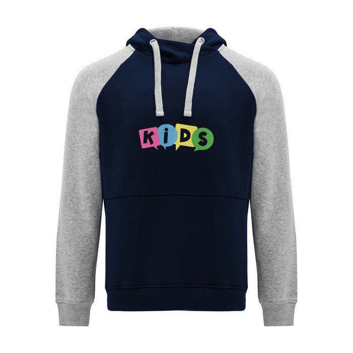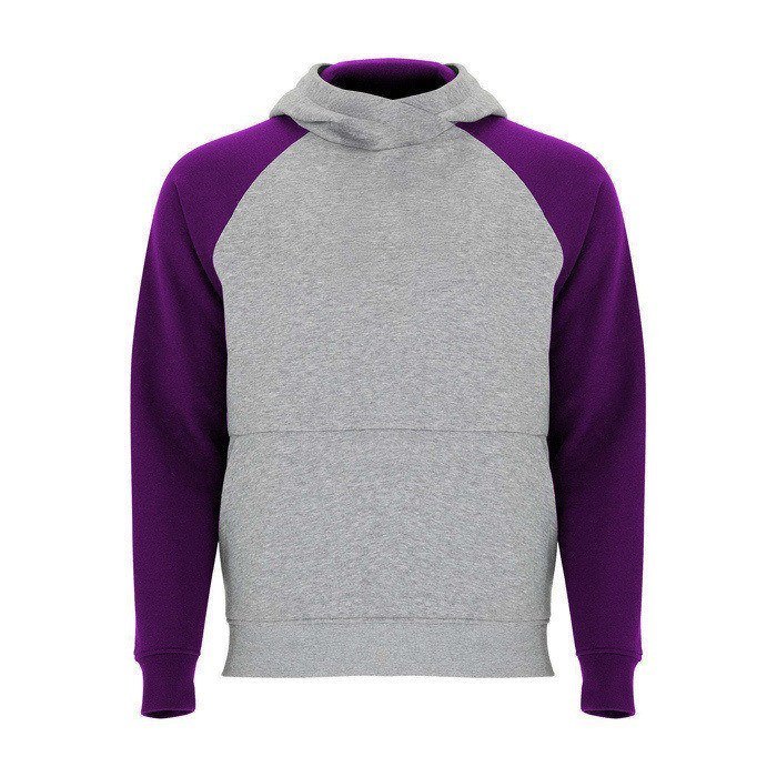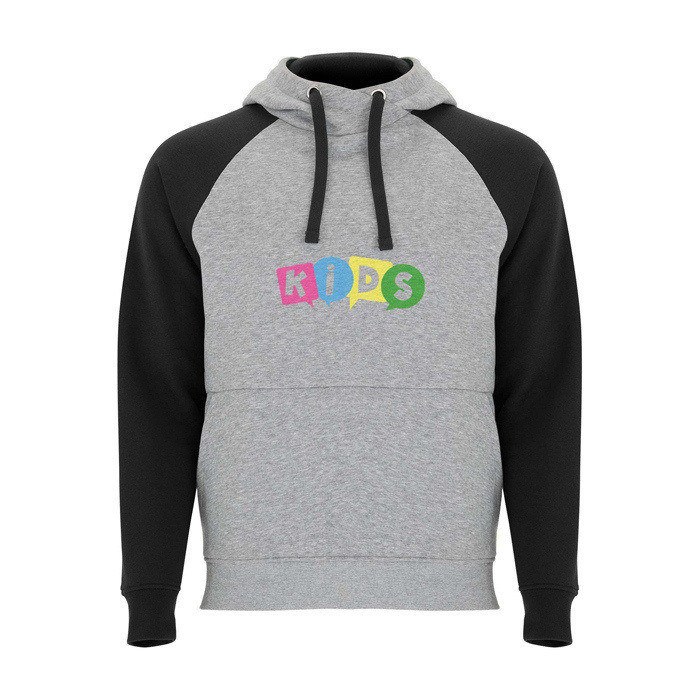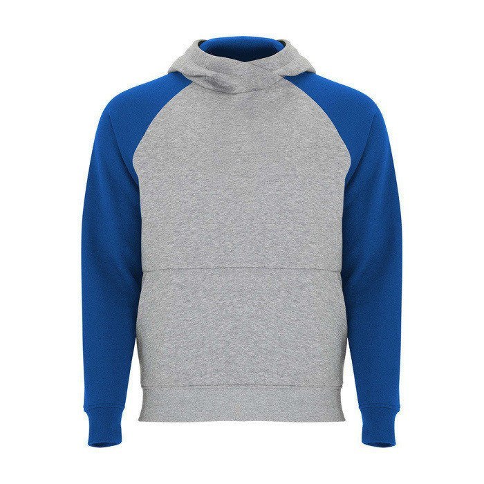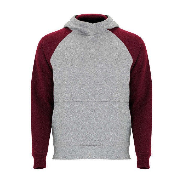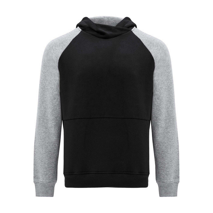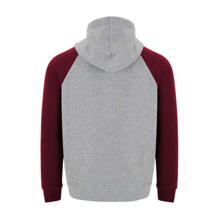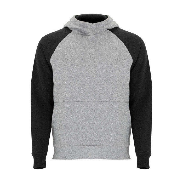 Tweekleurige unisex hoodie. Capuchon met gekruiste hals en metalen oogjes. Contrasterende binnenkant van de capuchon, trekkoord en raglanmouwen. Kangoeroezak. Mouwboorden en randjes van 1x1 ribgebreid elastaan. Verwijderbaar label.