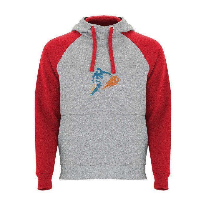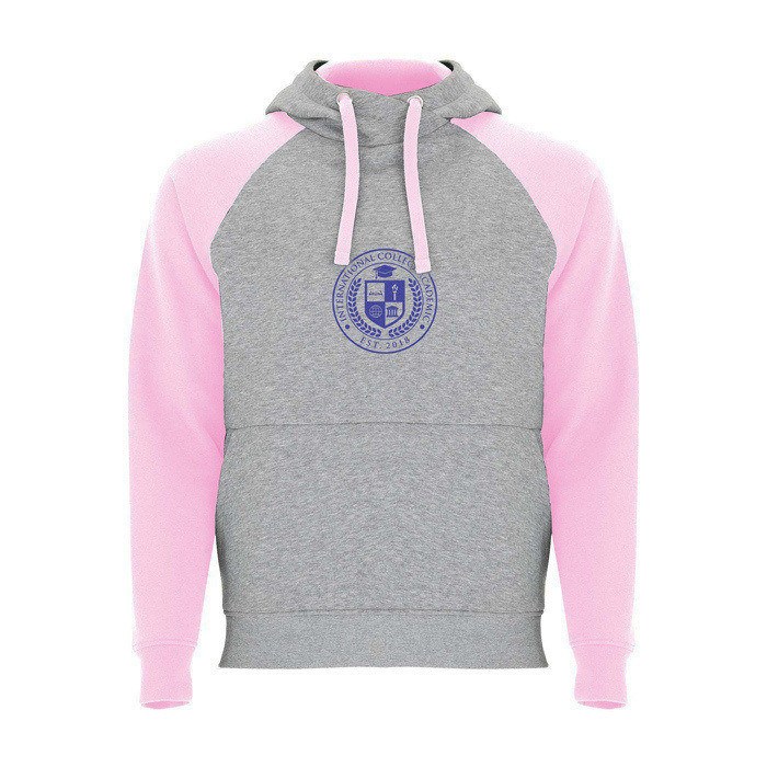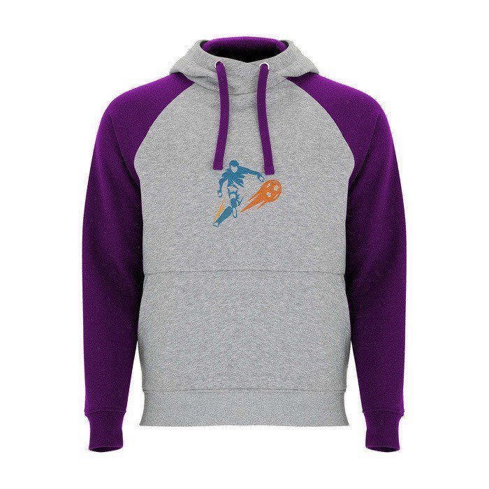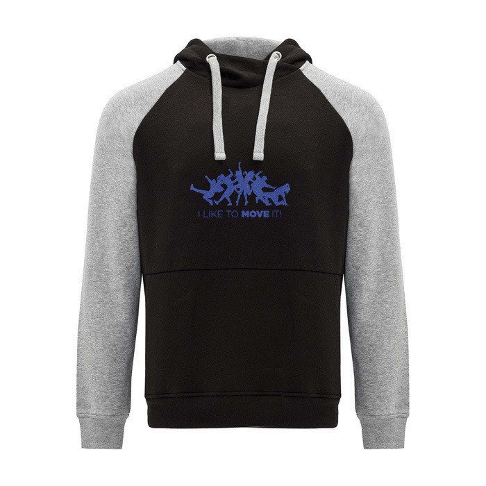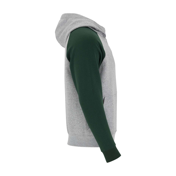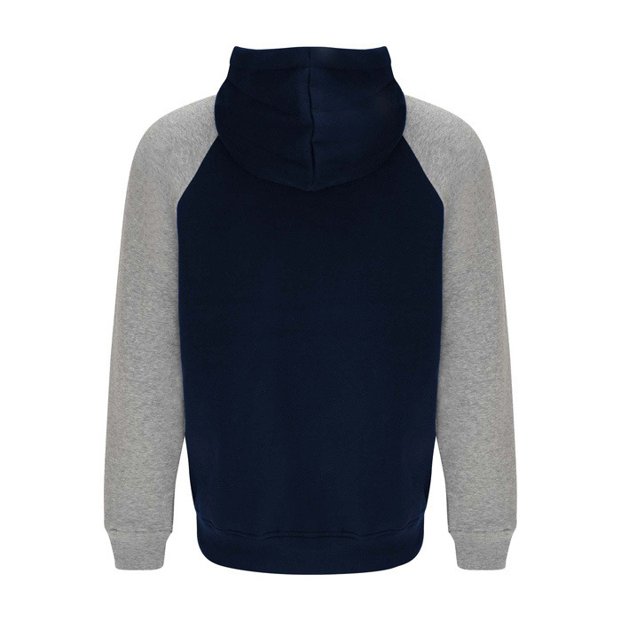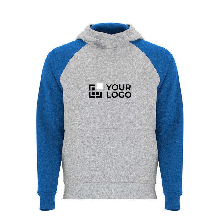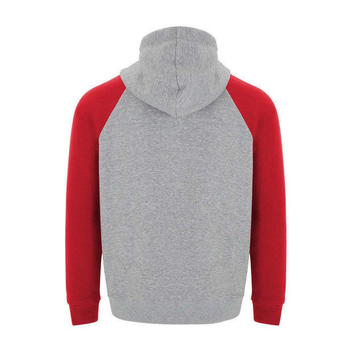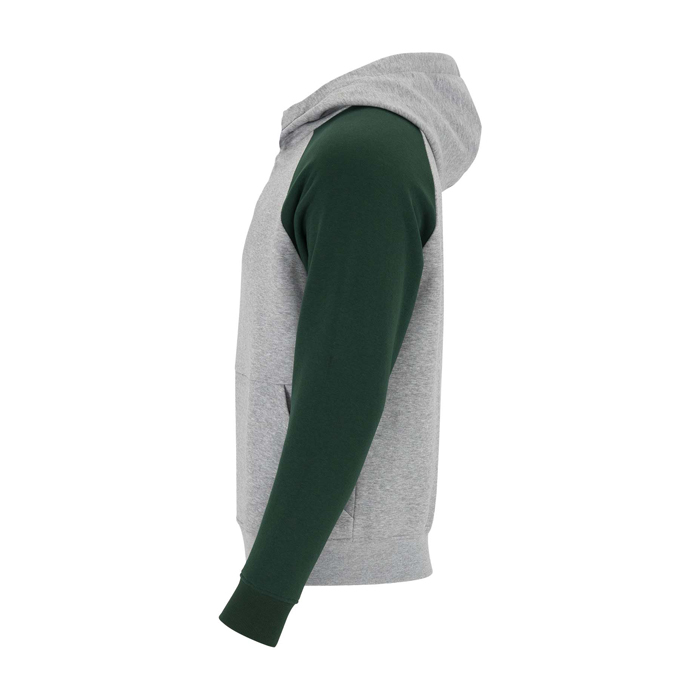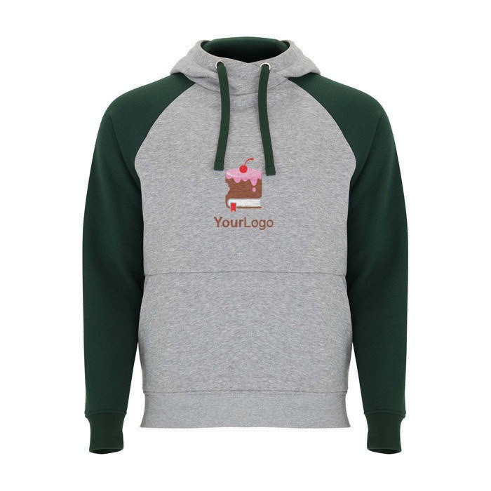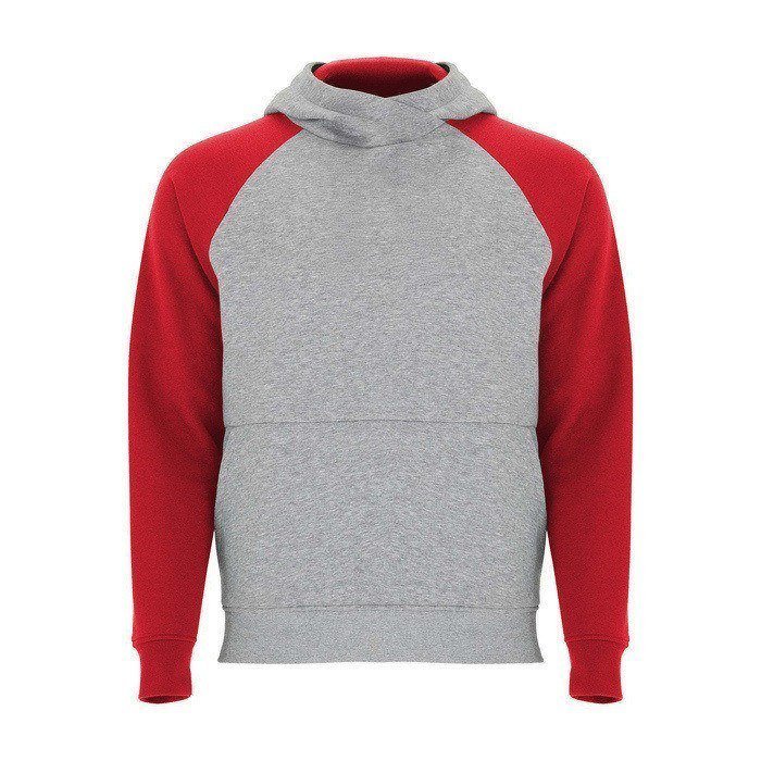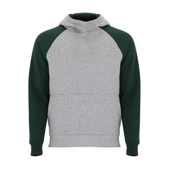 Tweekleurige unisex hoodie. Capuchon met gekruiste hals en metalen oogjes. Contrasterende binnenkant van de capuchon, trekkoord en raglanmouwen. Kangoeroezak. Mouwboorden en randjes van 1x1 ribgebreid elastaan. Verwijderbaar label.
