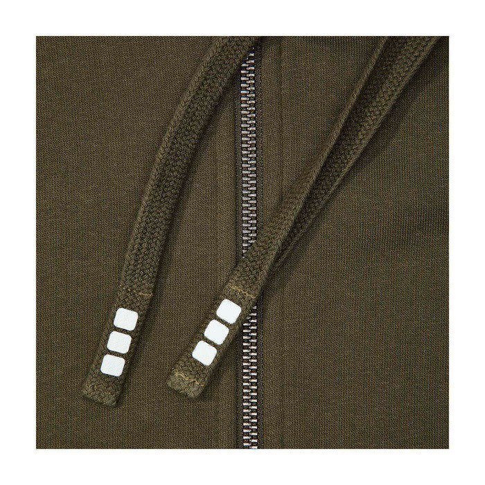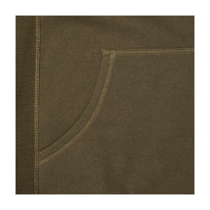 Ribgebreide zijpanelen. Plat gebreide rib mouw. Ribgebreide onderzijde. Trekkoord in capuchon. Kangoeroezak. Halve maan. Single jersey voering aan binnenkant capuchon. Gegraveerde zilveren oogjes. Satijnen nektape. contrast gekleurde visgraat tape.