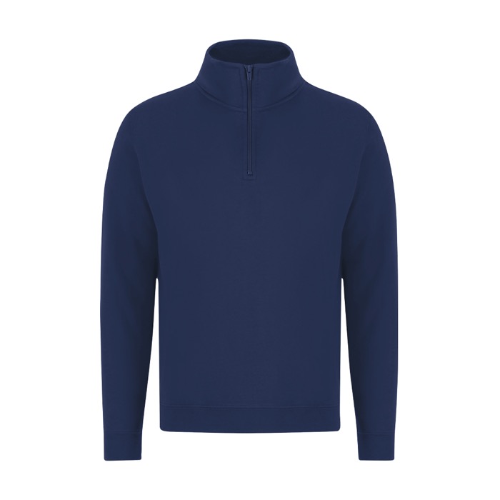 - Unisex sweater met halve rits en gevoerde hoge kraag