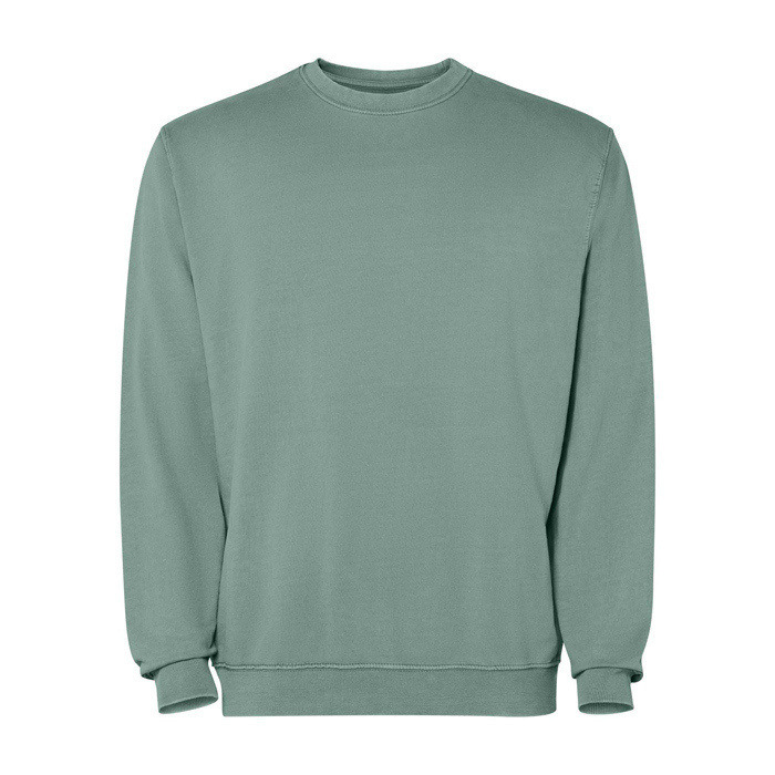 Deze unisex trui heeft een stoere acid-wash afwerking en een comfortabele 2x1 geribde kraag, boorden en zoom in dezelfde kleur. Versterkte naden bij de boorden, zoom, tailleband en armsgaten zorgen voor extra duurzaamheid. De subtiele tone-on-tone deksteek bij de hals maakt het design helemaal af.