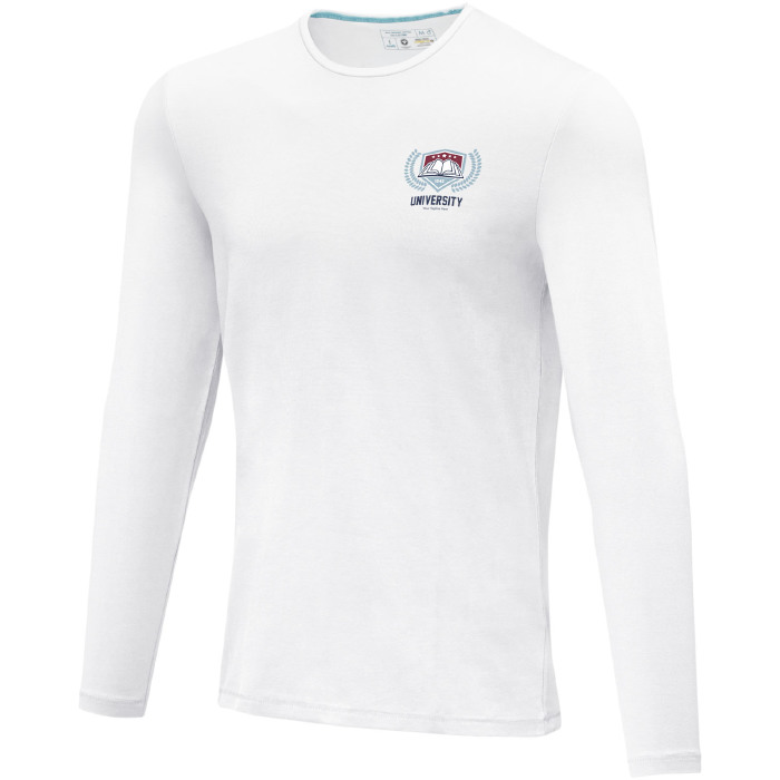 Een shirt met lange mouwen doet het altijd goed als merchandising voor de herfst. Dit duurzame model kun je bedrukken met je logo. Keuze uit vijf kleuren.