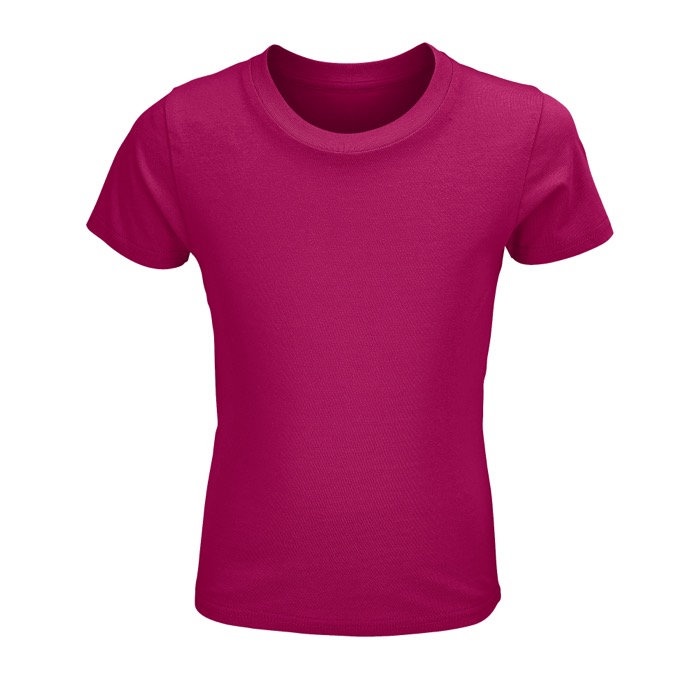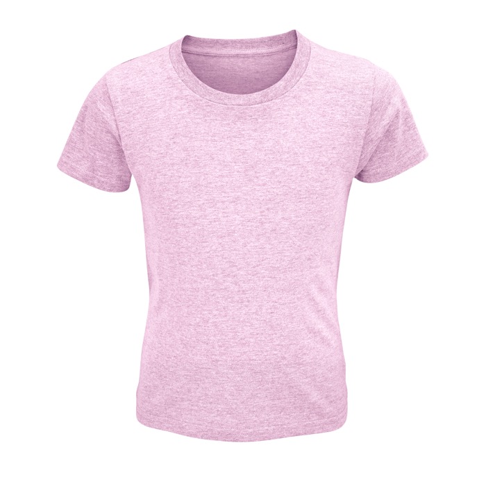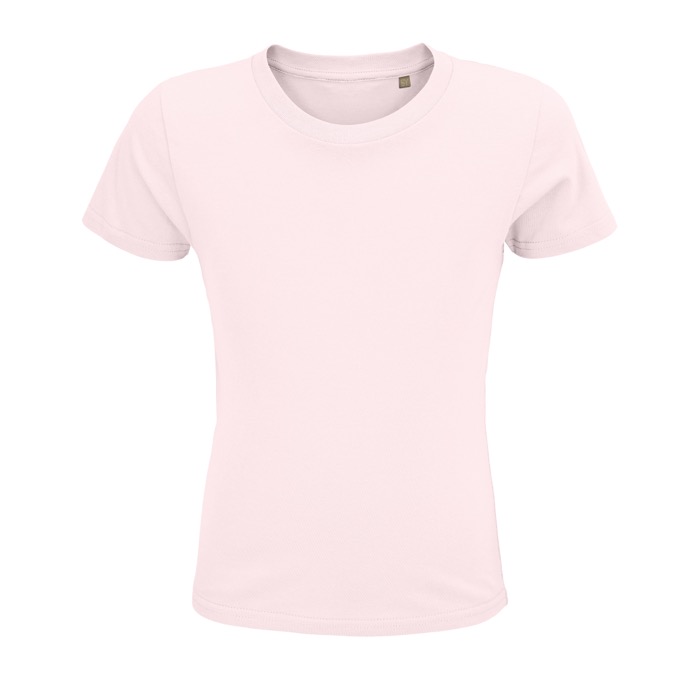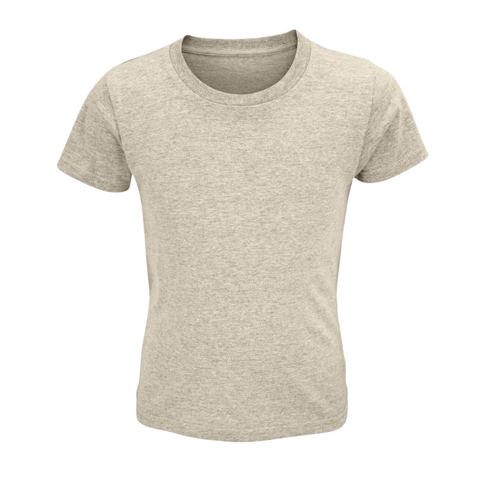 Kinder-T-shirt van 150 g/m² kant-en-klaar gebreid, 100% biologisch katoen, verrijkt met een enzymatische behandeling voor een zachter gevoel. Met een geribbelde afwerking aan de hals. Duurzaam geproduceerd.