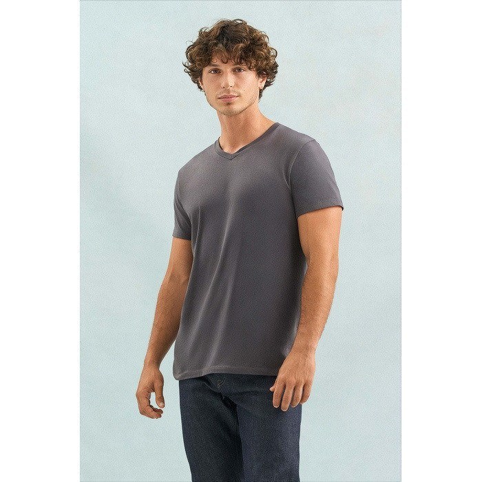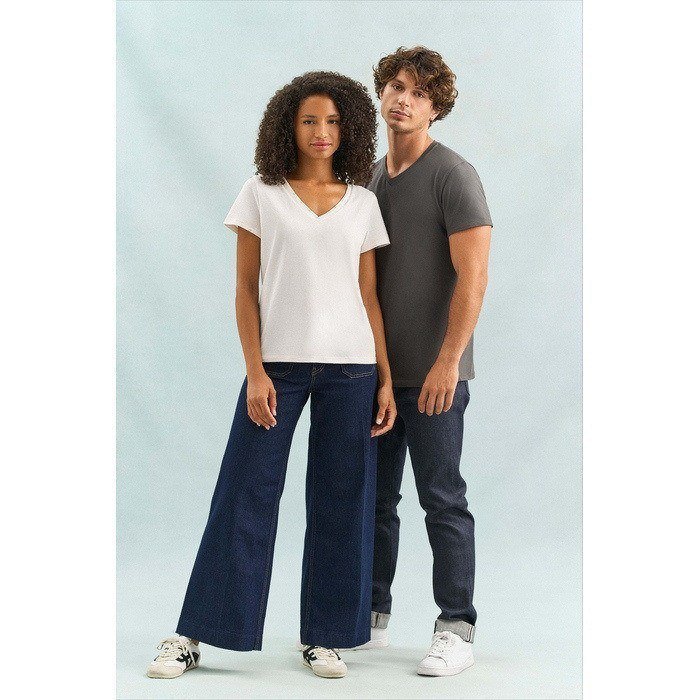 Unisex T-shirt van halfgekamd katoen met V-hals