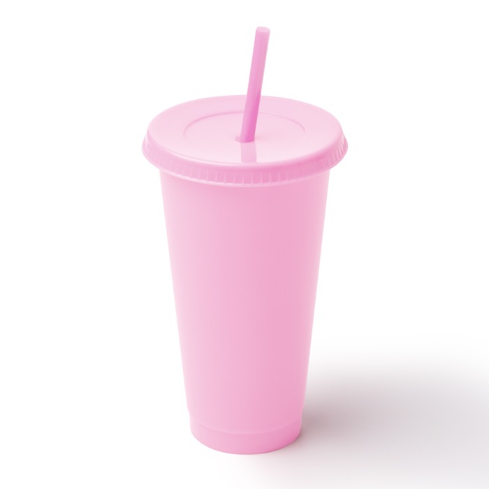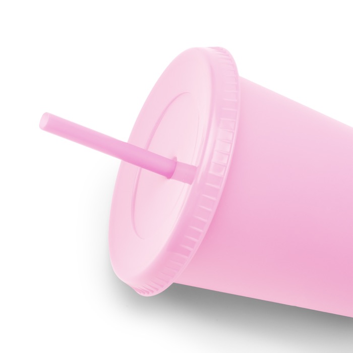 Herbruikbare beker van gerecycled plastic met deksel en rietje 710ml