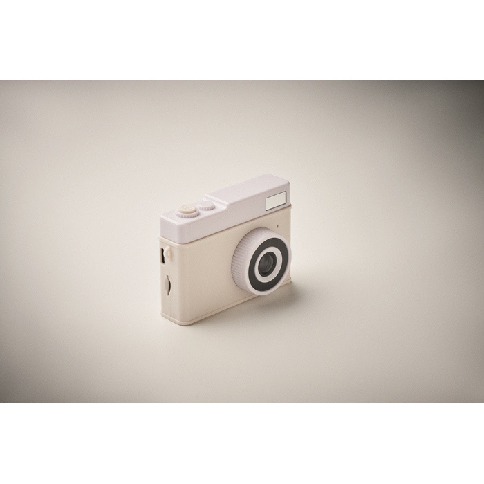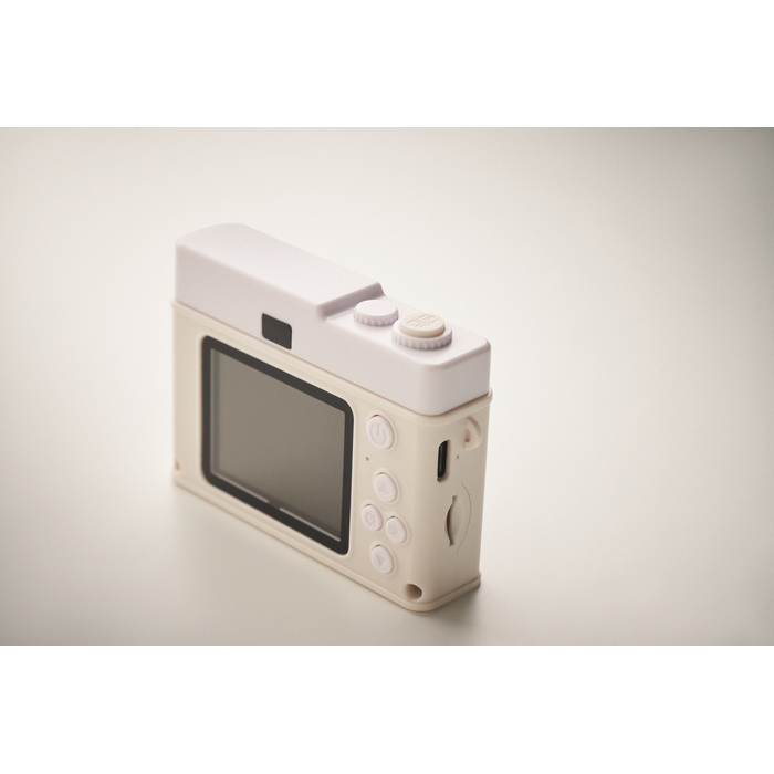 Compacte digitale camera met lichte behuizing en 2,0" LCD-monitor om foto’s en video’s direct terug te kijken. Voorzien van een lens met F2.4-diafragma voor scherpe opnames onder normale omstandigheden, resolutie tot 12 MP en opname in FHD. Integreert 4 MB RAM, een batterij van 300 mAh en een USB-C-kabel voor laden en overdracht. Werkt met SD-kaart, niet inbegrepen. Geschikt voor incentive-acties, evenementen en corporate kits.