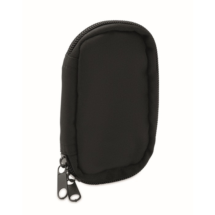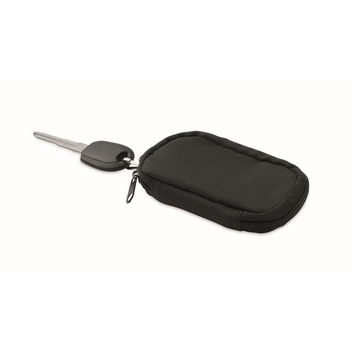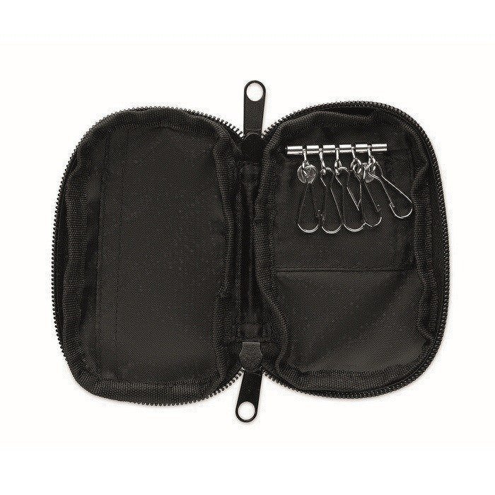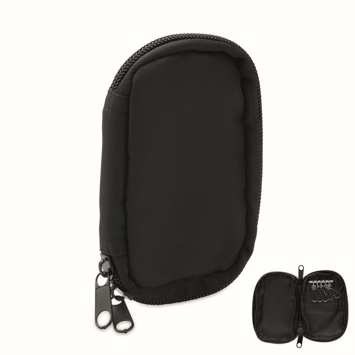 Sleuteletui van RPET 300D met binnenvoering van RPET 210D, ontworpen om sleutels netjes te organiseren en te vervoeren. Voorzien van een ritssluiting om de inhoud beschermd te houden in tassen, rugzakken of lades. Bevat 5 metalen ringen om sleutelbossen te scheiden per toegang, afdeling of voertuig, wat het dagelijkse beheer vergemakkelijkt. Compact formaat en gemakkelijk te hanteren bij receptie, onderhoud of verkoopteams. Geschikt als corporate item voor beurzen, onboarding of werkkits.