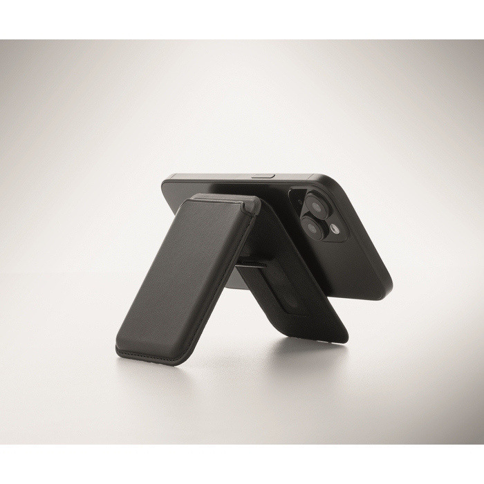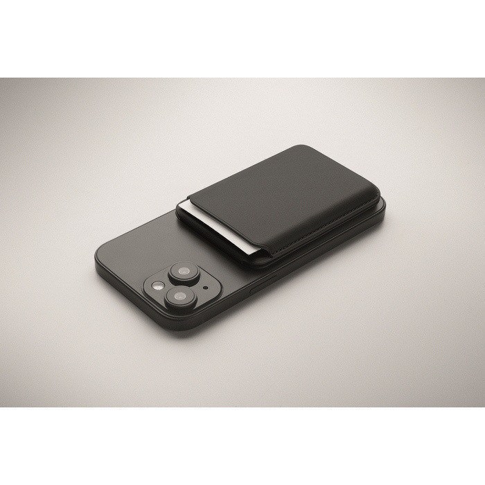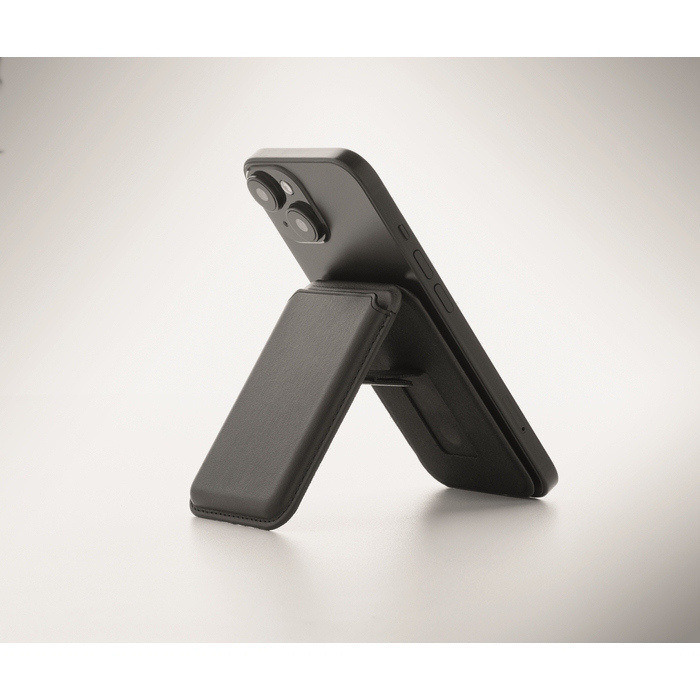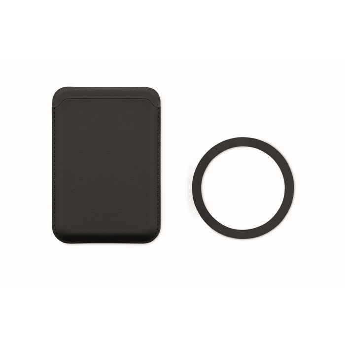 Magnetische kaarthouder van PU-kunstleer, bedoeld om creditcards overzichtelijk mee te nemen. Hij biedt ruimte voor maximaal 3 kaarten en wordt via de magnetische basis aan de mobiele telefoon of andere compatibele oppervlakken bevestigd. Voorzien van een standaardfunctie om de telefoon neer te zetten en videobellen of het bekijken van content te vergemakkelijken. Inclusief een extra metalen ring die de grip verbetert en helpt het toestel met één hand te bedienen. Handig voor welkomstacties, beurzen of bedrijfspakketten.