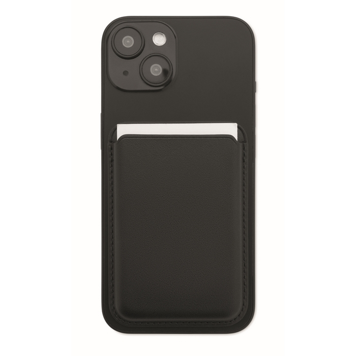 Magnetische kaarthouder van kunstleer voor maximaal 3 creditcards, compact mee te nemen. Wordt met de magnetische basis aan de telefoon bevestigd, zodat kaarten binnen handbereik blijven zonder extra volume in de zak. Inclusief standaardfunctie voor liggende of staande weergave van de telefoon en een extra metalen ring voor betere grip. Aanbevolen voor corporate acties, beurzen of welkomstpakketten.