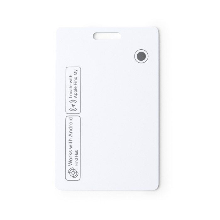 Kunststof tracker tegen verlies in kaartformaat, bedoeld om in je portemonnee, rugzak of badgehouder mee te nemen zonder ruimte in te nemen. Hij is bestand tegen spatwater en werkt met iOS en Android via een mobiele app en Bluetooth, zodat je hem makkelijk dagelijks kunt beheren. Met zoekfunctie en geluidssignaal om hem snel terug te vinden als je hem uit het oog verliest. Opladen doe je met draadloze opladers, dus geen kabels en een eenvoudigere logistiek. Handig voor interne identificatie, uitdelen op events of loyaliteitsacties.