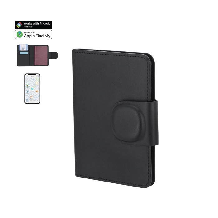 Paspoorthoes van synthetisch leer met geïntegreerde slimme tracker, bedoeld voor zakenreizen en frequente verplaatsingen. Met duale verbinding, compatibel met Apple Find My en Android Find Hub, zodat je de locatie in realtime snel en nauwkeurig kunt volgen. De magnetische sluiting helpt je documenten onderweg beschermd te houden. Inclusief knoopcelbatterij, direct klaar voor gebruik vanaf dag één. Een praktische optie voor merkacties op beurzen, verkoopincentives of als welkom voor nieuwe medewerkers.