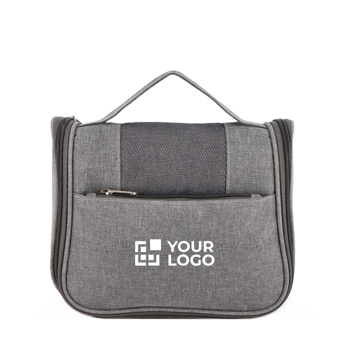 Toilettas van gerecycled plastic 300D met voorvak met rits en een handvat aan de bovenkant om hem makkelijk mee te nemen. Binnenin zit een haak om hem op te hangen, zodat je alles bij de hand houdt. Met twee vakken met rits, waarvan één van mesh, plus vier open mesh vakjes voor reisformaat flesjes. Het hoofdvak biedt ruimte voor andere toiletartikelen. Handig als relatiegeschenk voor zakenreizen, beurzen of HR-acties.