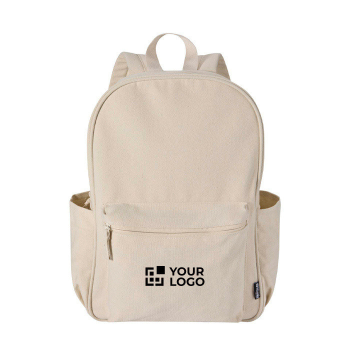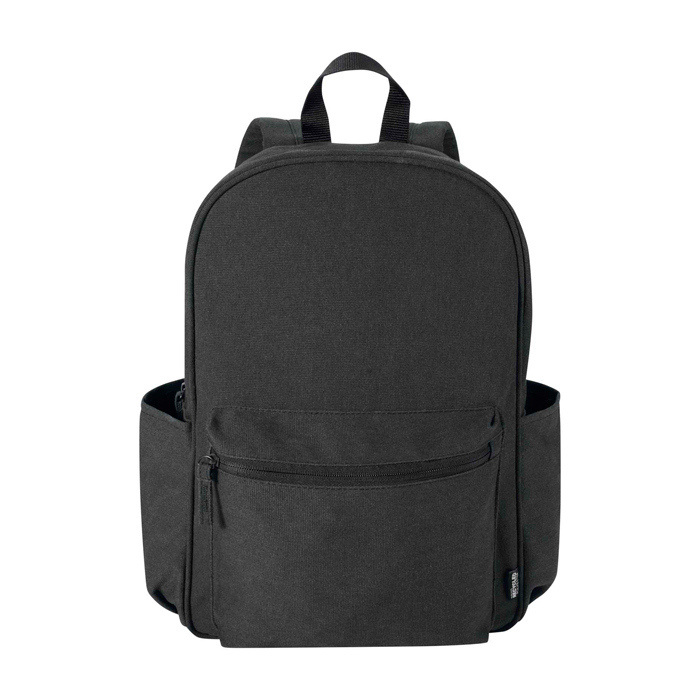 Waterafstotende urban rugzak van gerecycled canvas met GRS-certificaat (Global Recycled Standard) en bijpassende voering van gerecycled plastic. Heeft een gewatteerd vak voor een 15,6” laptop en een extra gewatteerde sleeve om je apparatuur te beschermen tijdens dagelijkse verplaatsingen. Met een voorvak met rits en twee zijvakken om accessoires te organiseren. Ook voorzien van een ademend mesh rugpand en verstelbare schouderbanden voor comfortabel gebruik. Met 16 liter inhoud past hij bij HR-acties, events en als relatiegeschenk met logo.