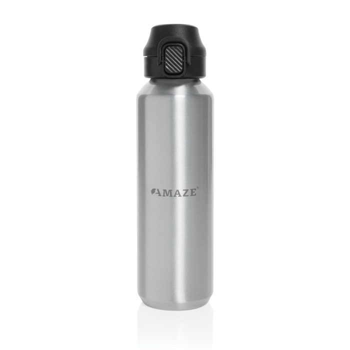 Sportfles van gerecycled staal met vergrendelbare lekvrije dop 600 ml