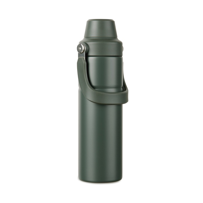 Een moderne en duurzame dubbelwandige vacuümfles van recycled roestvrij staal. Perfect ontworpen voor functionaliteit met een handig handvat, is deze fles ideaal voor avonturen. Het deksel heeft twee openingen: een slokvriendelijke bovenkant voor gemakkelijke toegang en een grotere opening voor moeiteloos bijvullen en eenvoudig schoonmaken. De dubbelwandige isolatie houdt je drankje tot 12 uur koud en tot 4 uur warm, zodat je tijdens je reis fris blijft. Niet geschikt voor de vaatwasser of magnetron, alleen handwas. Gecertificeerd door RCS (Recycled Claim Standard), RCS-certificering garandeert dat de hele toeleveringsketen van gerecyclede materialen gecertificeerd is. Het totale gerecyclede gehalte is gebaseerd op het totale productgewicht. Dit product bevat 65% RCS-gecertificeerd gerecycled roestvrij staal.