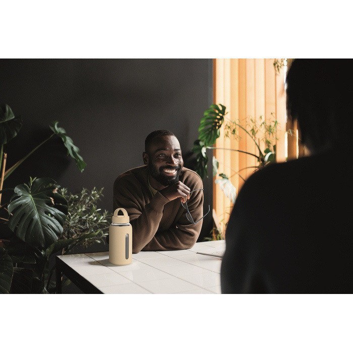 Borosilicaat glazen fles met een inhoud van 600ml, ontworpen voor dagelijks gebruik op kantoor of onderweg. Voorzien van een siliconen hoes die de grip verbetert en helpt het oppervlak te beschermen tegen lichte stoten. De dop is van PP en heeft een draaglus om de fles gemakkelijk te dragen of aan een rugzak te hangen. Praktisch formaat voor water, infusies of koude dranken. Handige optie voor welkomstpakketten of interne acties.