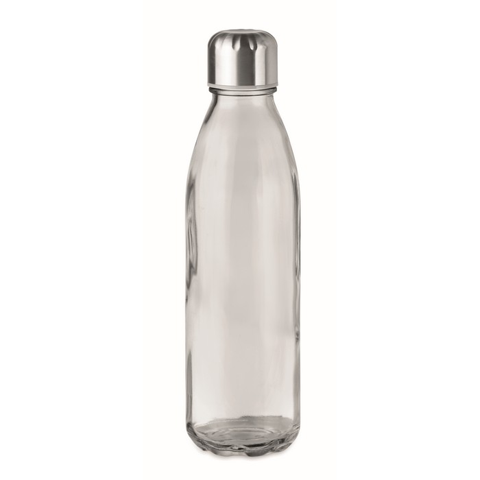 Glazen drinkfles met RVS dop en een inhoud van 650 ml. Niet geschikt voor koolzuurhoudende dranken. Lekvrij.