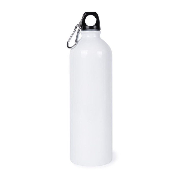 Fles 750 ml, geschikt voor sublimatie, gemaakt van gerecycled staal. Inclusief karabijnhaak voor eenvoudig transport.