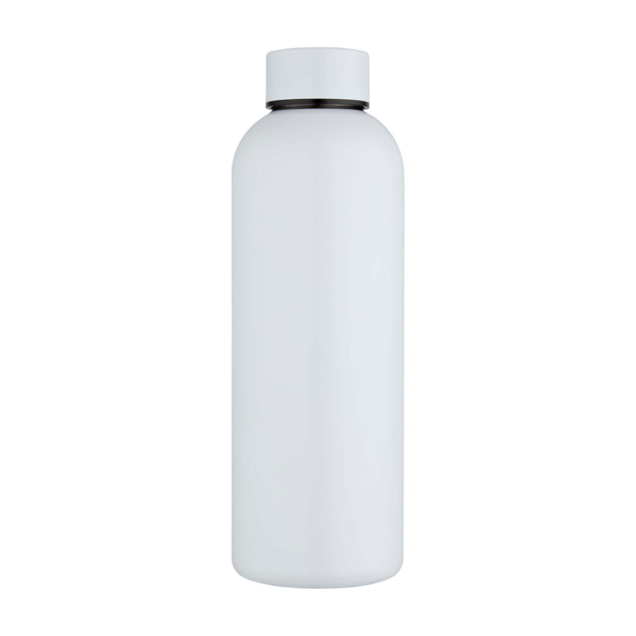 Fles van gerecycled roestvrij staal met RCS-certificaat (Recycled Claim Standard) en een enkelwandige constructie, bedoeld voor dagelijks gebruik. Met een schroefdop voor een veilige sluiting en een speciale buitencoating die bedrukken via sublimatieprint eenvoudig maakt, handig voor ontwerpen in kleur. De glanzende afwerking zorgt voor een verzorgde uitstraling op kantoor of onderweg. Licht en stevig, helpt je om je hydrateroutine vol te houden. Aan te raden voor merkacties, interne events of corporate merchandising met logo.