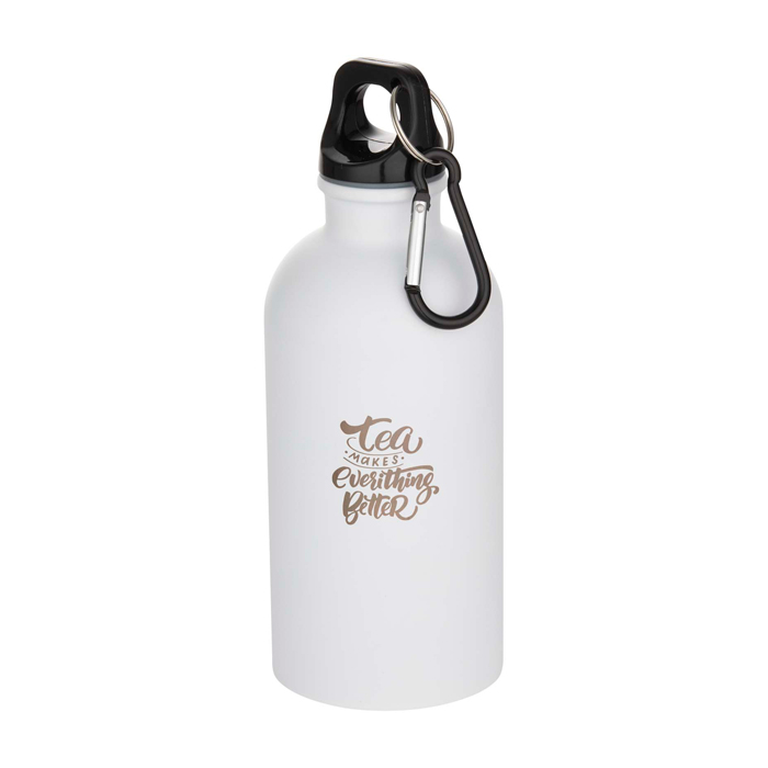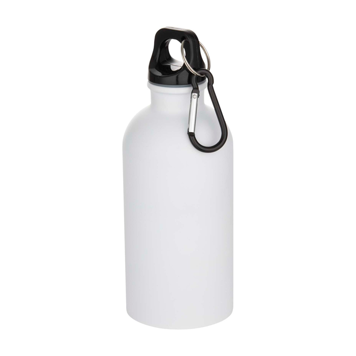 Blijf altijd gehydrateerd met deze duurzame maar lichte 400 ml waterfles van RCS-gecertificeerd gerecycled roestvrij staal met een matte afwerking. Het is de perfecte metgezel voor sport, daguitstapjes of voor gebruik op kantoor. De enkelwandige Oregon-fles heeft een draaideksel en biedt voldoende ruimte om elk soort logo toe te voegen. Klem de bevestigde karabijnhaak (niet geschikt om mee te klimmen) stevig vast aan een tas om deze niet te verliezen.