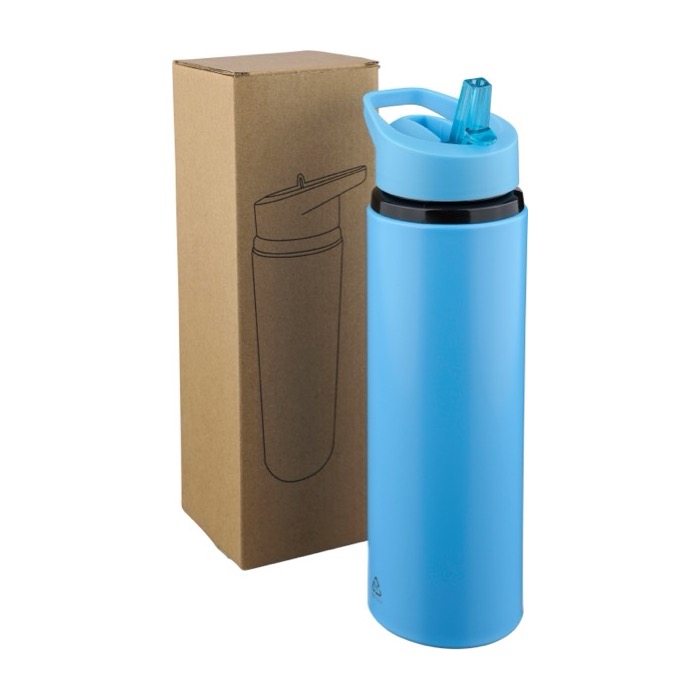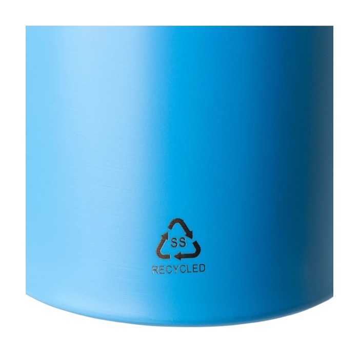 Drinkfles van gerecycled roestvrij staal 304 met een inhoud van 500 ml, gemaakt voor comfortabel dagelijks gebruik. Met een plastic dop met draagring, inklapbare tuit en intern rietje. Zo drink je makkelijk zonder steeds los te draaien. Alleen geschikt voor koude dranken. Daardoor ideaal voor kantoor, events of buitenactiviteiten. Inclusief roestvrijstalen logo, gegraveerd met laser.