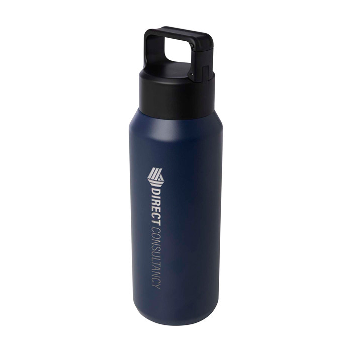 Zet je merk in de kijker met deze vacuümgeïsoleerde fles met karabijnhaakdop. Houdt dranken koud en vergezelt je bij elk avontuur.
