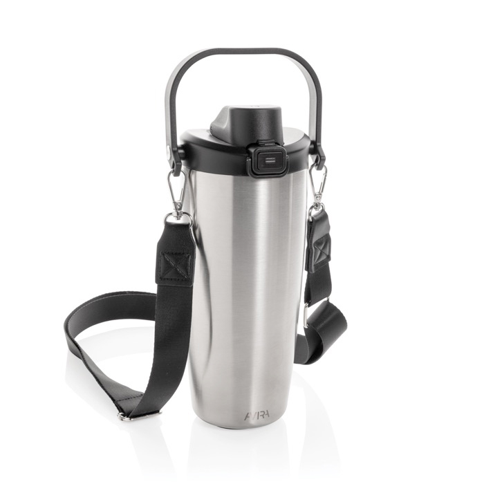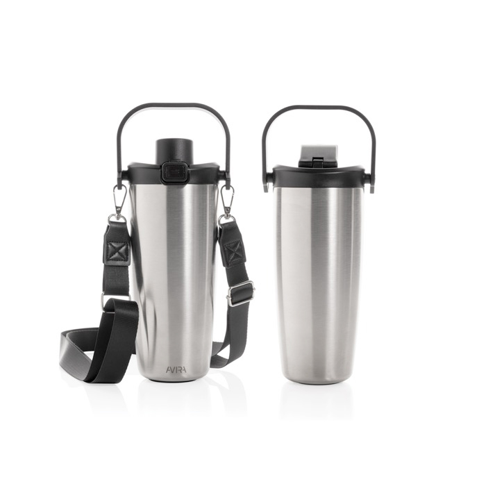 Fles van gerecycled staal met RCS-certificering (Recycled Claim Standard), gemaakt voor je dagelijkse ritme in de stad en onderweg. Hij heeft een lekvrije sluiting, een draaglus en een afneembaar koord, zodat je hem comfortabel crossbody of over je schouder draagt. De isolatie helpt dranken tot 5 uur warm en tot 15 uur koud te houden. De stille siliconen bodem vermindert geluid en stoten wanneer je hem neerzet. Hij wordt geleverd in een herbruikbare kraftpapieren doos met FSC (certificering voor duurzaam bosbeheer), handig als bureauaccessoire. Geschikt voor interne acties en bedrijfsevenementen.