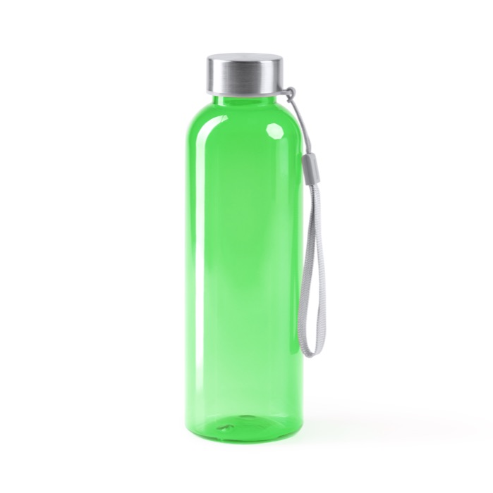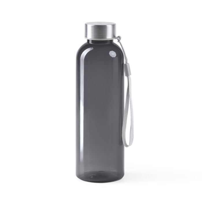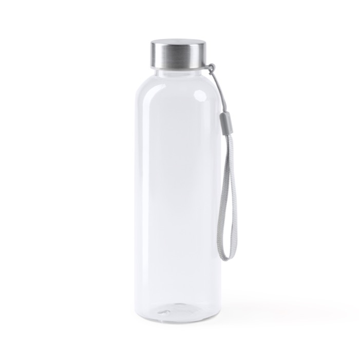 Bidon van RPET met transparante body en een inhoud van 600 ml. Voorzien van draagriem. Combineert functioneel design met milieubewustzijn.