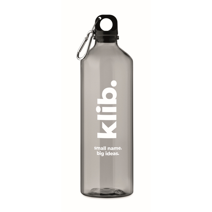 - Translucente RPET-fles met geïntegreerde karabijnhaak