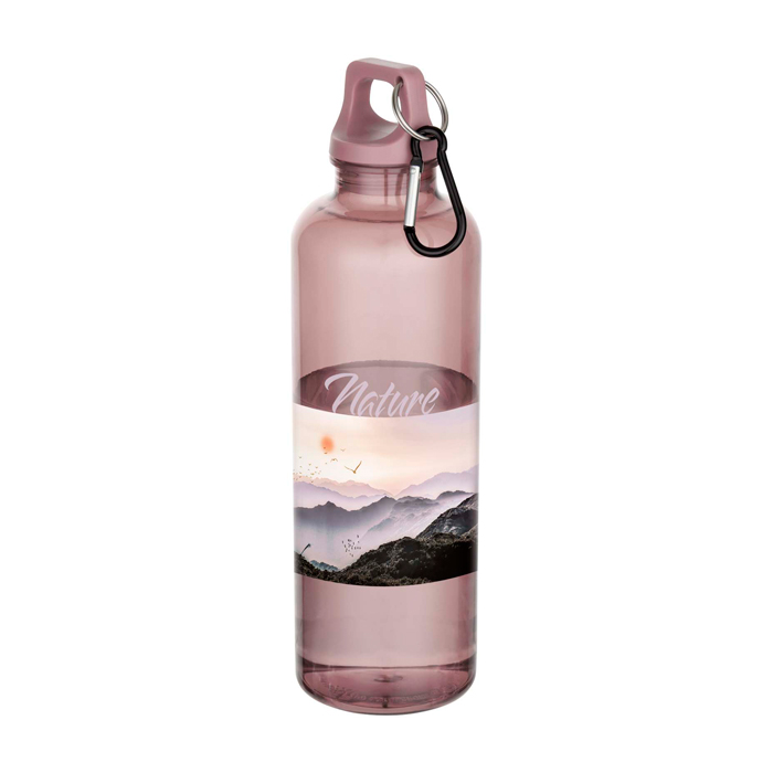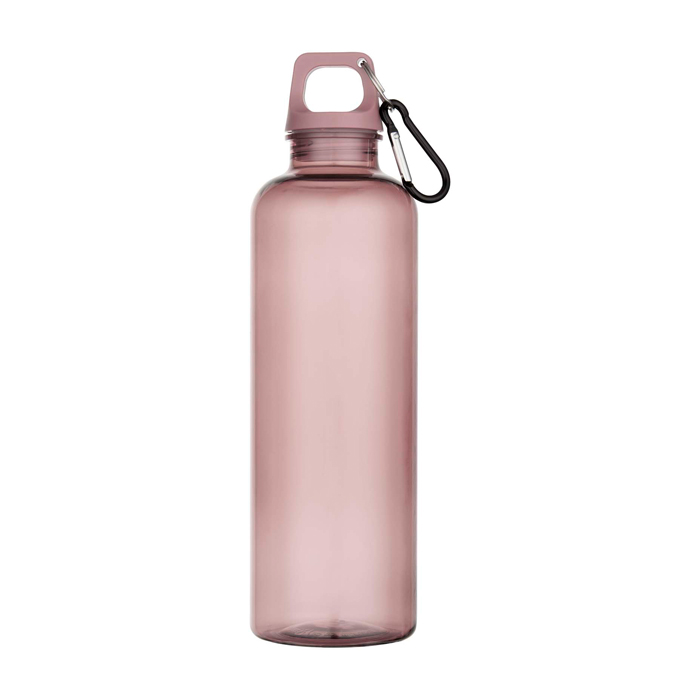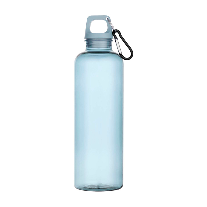 Enkelwandige fles van gerecycled plastic met een inhoud van 750 ml. Gemaakt om mee te gaan in je dagelijkse ritme: op kantoor, onderweg of tijdens buitenactiviteiten. Met een schroefdop voor een veilige afsluiting en een karabijnhaak om hem aan tassen of rugzakken te bevestigen, zodat je hem tijdens transport niet kwijtraakt (niet geschikt voor klimmen). Het oppervlak biedt veel ruimte voor personalisatie met een logo. Zo blijft je merk goed zichtbaar bij dagelijks gebruik. Handig voor HR-acties, interne events of marketingcampagnes.