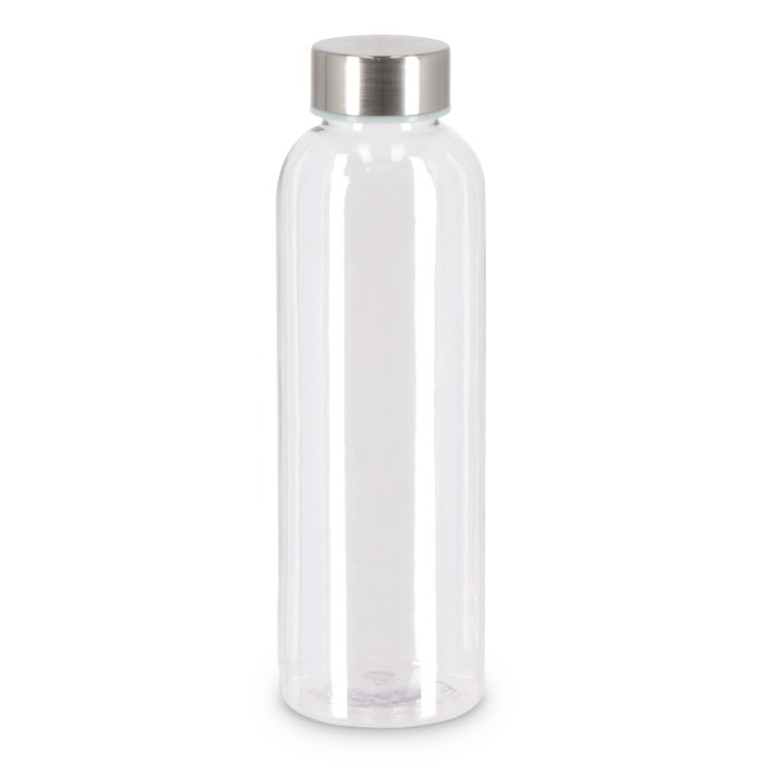 Fles van gerecycled plastic met zilverkleurige dop 500 ml