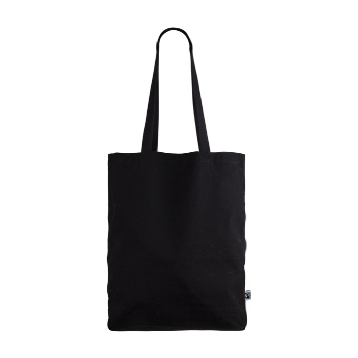 Tas gemaakt van 280 gr fairtrade katoen in de kleur zwart. Met lange en stevige handgrepen.