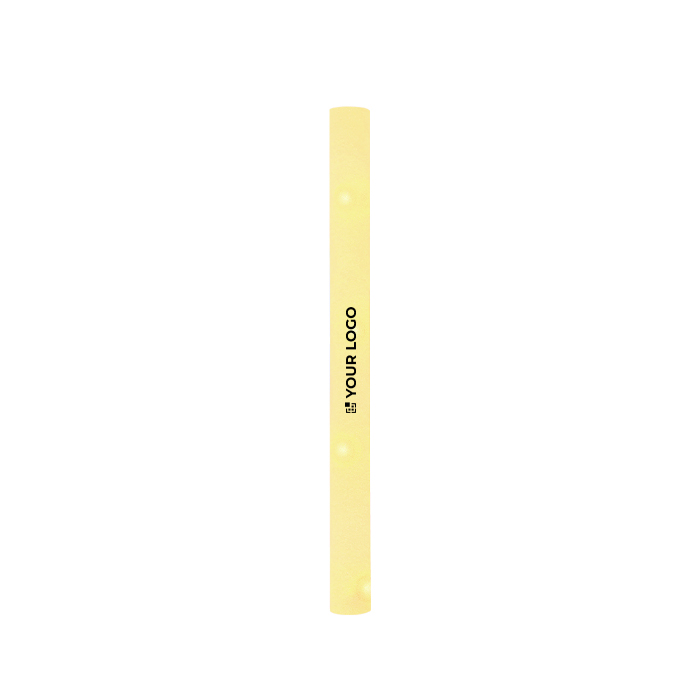 Lichtstaaf van schuim met een zachte, prettige aanraking. Bedoeld om acties op evenementen en merkactiviteiten extra energie te geven. De binnenkant licht op met vier LED-lampjes (lichtgevende dioden) voor betere zichtbaarheid in omgevingen met weinig licht. Inclusief knoopcelbatterijen en te activeren via een knop in de basis met twee standen: vast licht of knipperlicht. Een praktische optie om uit te delen op beurzen, concerten of bedrijfsanimaties met je logo.