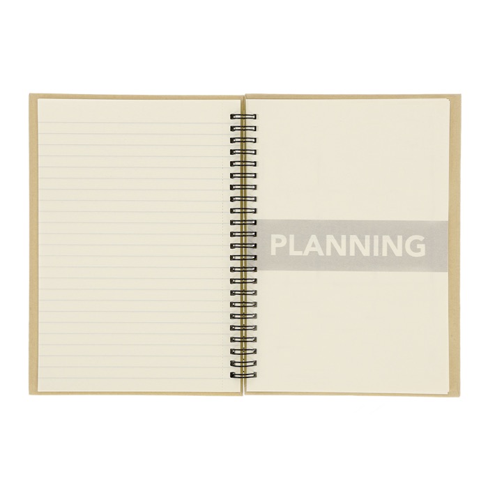 Notitieboek met maandplanner inbegrepen, met harde kaft van gerecycled karton. Bevat 80 crèmekleurige bladen met lijnen en afscheurmarkering, 13 ongedateerde plannerbladen met maandkalenderweergave en 2 extra gelijnde bladen voor notities. Perfect om je maand te plannen, aantekeningen te maken en je dagelijks leven te organiseren. Het gerecyclede karton is afkomstig van het hergebruik van productieresiduen en gerecycled papier aan het einde van de levenscyclus, en vormt zo een milieuvriendelijk en duurzaam canvas.