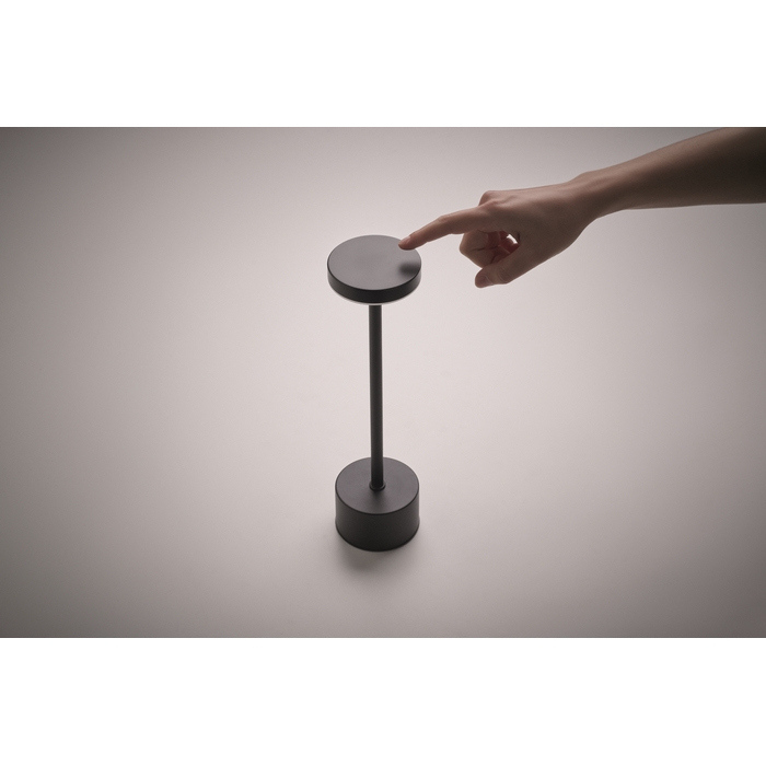 Aluminium tafellamp met 24 LED en touchbediening voor eenvoudig gebruik op een bureau of in een vergaderruimte. Biedt 3 lichtmodi en traploze dimregeling om de intensiteit aan te passen aan het moment, van ondersteuningslicht tot gerichte leesverlichting. Voorzien van een oplaadbare Li-ionbatterij van 1200 mAh met tot 6 uur autonomie, ideaal voor gebruik zonder kabels. Praktische oplossing voor het inrichten van werkplekken, trainingsruimtes of корпоративieve welkomstpakketten.
