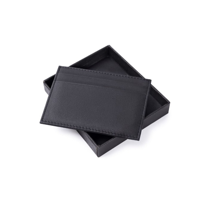 Zwarte leren kaarthouder in een elegante presentatiedoos