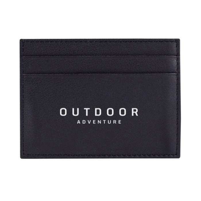 Echte leren kaarthouder, eenvoudig en elegant, geleverd in een doos die een verzorgde indruk geeft en wordt gezien als een exclusief detail.