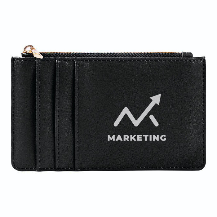 Eenvoudig accessoire van synthetisch leer, sterk en duurzaam, voor het meenemen van kaarten en muntjes. Laat je bedrijf opvallen met een stijlvol detail.