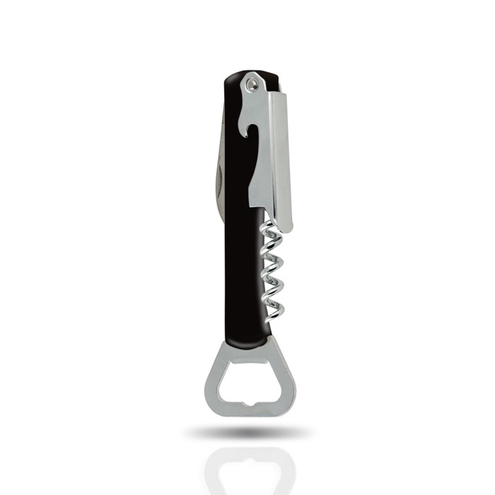 Deze kurkentrekker met roestvrijstalen mesje combineert functionaliteit met stijl. Het is een veelzijdig accessoire dat geschikt is voor het openen van zowel wijnflessen als flesjes met kroonkurken. Bovendien kun je de kurkentrekker bedrukken met je logo om je merkzichtbaarheid te verhogen. Dankzij het moderne en innovatieve ontwerp is dit een ideale giveaway voor elk evenement waar eten en drinken geserveerd worden. De kwaliteit en het slimme design maken het een uitzonderlijke keuze voor iedereen die innovatie en goede smaak waardeert.