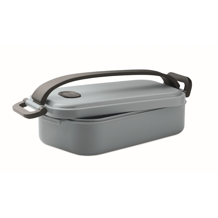 PP-lunchbox met sluiting via zijclips en hermetisch deksel, ontworpen om maaltijden te vervoeren en de inhoud goed beschermd te houden. De capaciteit van 800 ml maakt het mogelijk een volledige portie mee te nemen zonder te veel ruimte in de tas of rugzak in te nemen. Praktisch ontwerp voor dagelijks gebruik op kantoor, tijdens reizen of trainingen, met snel openen en sluiten. Geschikt voor interne bedrijfsacties, welkomstpakketten of merchandising voor zakelijke evenementen.
