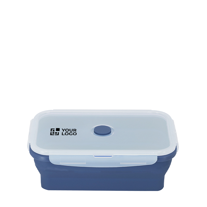 Opvouwbare lunchbox van hoogwaardig siliconen met een stevige, doorschijnende kunststof deksel en veiligheidssluiting. De flexibele body met matte afwerking kun je indrukken om ruimte te besparen en hem makkelijk op te bergen in lades, kluisjes of rugzakken. Inhoud: 1200 ml, geschikt voor complete maaltijden op kantoor of onderweg. BPA-vrij product (bisfenol A) met Food Grade-markering op de onderzijde. Een praktische optie voor interne welzijnscampagnes, HR-acties of relatiegeschenken met logo.