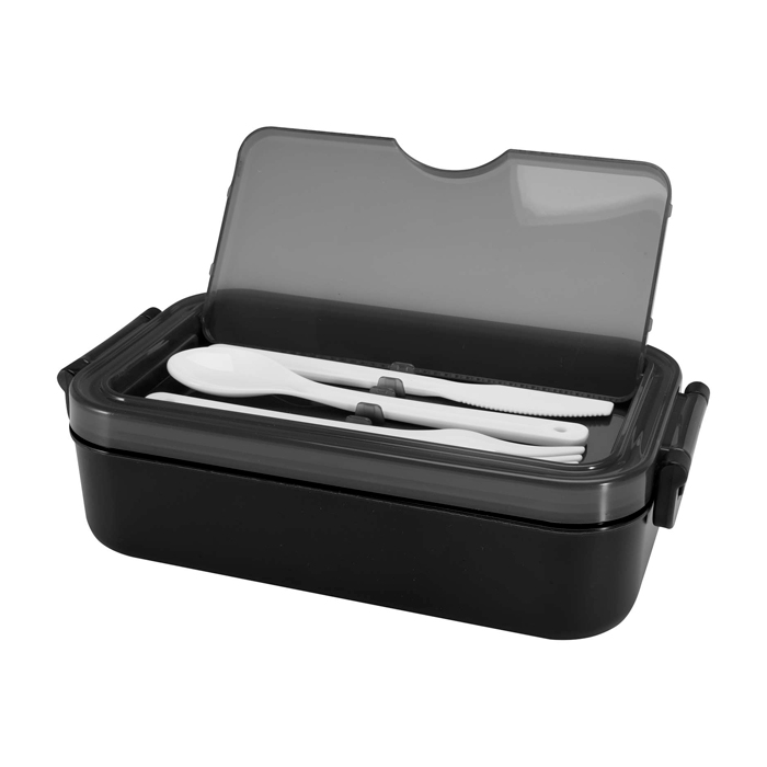 Geniet van verse, georganiseerde maaltijden met deze lunchbox met bijpassend bestek in het bovenste compartiment.