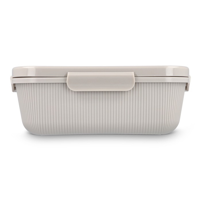 Plastic lunchbox met een eigentijds ontwerp, bedoeld om maaltijden en snacks netjes mee te nemen naar je werk. Het deksel met veilige sluiting helpt de inhoud te beschermen tijdens het vervoer en verkleint de kans dat hij per ongeluk opengaat in je rugzak. Het ruime formaat maakt het makkelijk om porties te scheiden en complete menu’s mee te nemen zonder veel ruimte in te nemen. De afwerking in moderne kleuren staat goed op kantoor en bij events. Een praktische optie voor HR-acties, congressen of als dagelijks bedrijfsgeschenk.